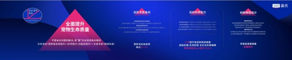 发布会上,蓝氏创新性提出"高阶营养 生命富养"品牌理念,从食材、配方、体验三方面升级宠物喂养标准。