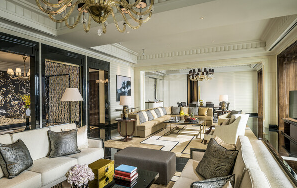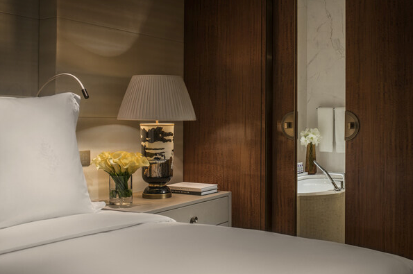 其中,总统套房以独特设计诠释着华贵典雅的全新境界。319㎡ 空中大平层,凭窗而望,繁华入景。飞鸟栖息的织锦壁画呼应城市的自然生态,镂空屏风与法国定制的欧式床篷相映成趣,让中式雅韵与古典浪漫在此完美相融,悠然的度假氛围,令人彻底放松。