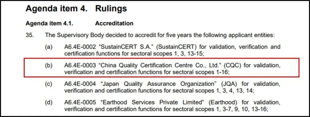 导言:近日,经联合国气候变化框架公约(UNFCCC)《巴黎协定》A6.4监督委员会第17次会议审议,正式认可中国质量认证中心为《巴黎协定》A6.4碳信用机制(PACM)指定经营实体(机构编号0003)。