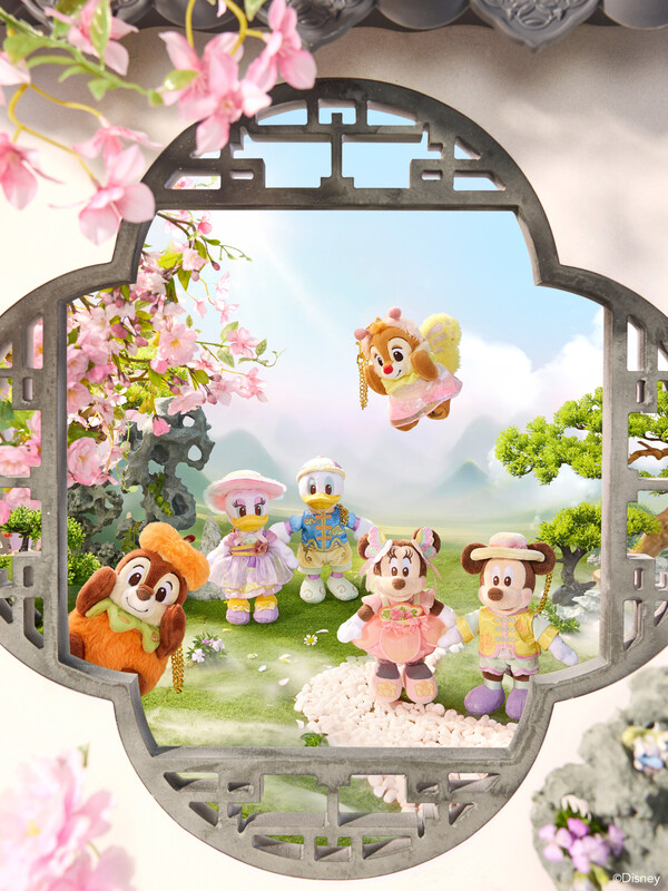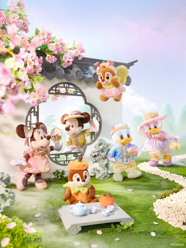 达菲和朋友们对花的热爱也绽放在他们缤纷靓丽的全新服饰上。达菲选择了山茶花主题,雪莉玫头戴用月季装点的可爱礼帽,杰拉多尼身着四季兰刺绣上衣,奥乐米拉的上衣则绣有木槿花图案。星黛露的头饰由玉簪花层叠而成,可琦安的配饰则融入荷花元素,而玲娜贝儿的立领外套和头饰上都点缀着精巧的桂花元素。米奇和米妮也换上了饰有木芙蓉元素的典雅中式服装,共赴这场花漾聚会。