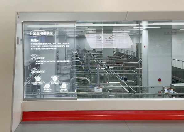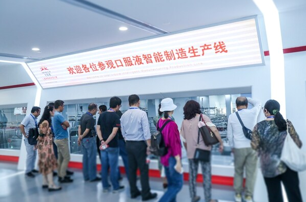 活动期间,与会嘉宾实地参访新会生产基地,工厂内智能生产场景令人印象深刻 —— 从智能分配装置运送,到全伺服电机控制灌装封口、灭菌物流智能转运,再到全自动灯检机检测,整个过程几乎无需人工干预,关键参数如灌装容量精确控制在±1.5%之间,灭菌过程自主开发了口服液快速杀菌烘干一体化专利技术,控制产品微生物风险,全自动灯检机可识别最小40μm的异物,每瓶口服液拍摄上百张照片,让不良品无处可逃,确保产品质量的稳定性与一致性。