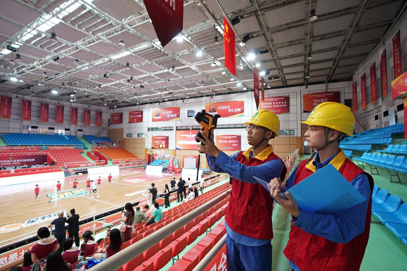 国家电网浙江电力(宁波)红船共产党员服务队队员巡检“浙BA”赛场线路。