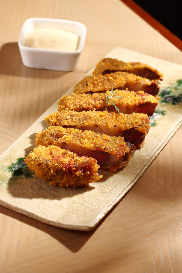 吉列和牛配塔塔酱 - 低温慢煮和牛裹上金黄脆皮,外酥里嫩。搭配酸香塔塔酱,轻轻一咬便发出咔嚓声,味蕾立即被脂香与酱香包围,满足感瞬间拉满。