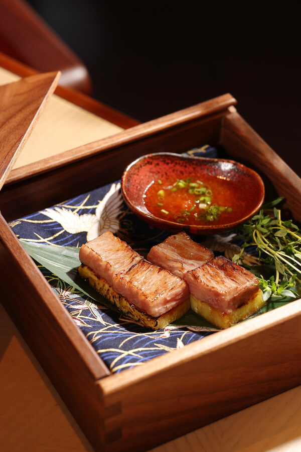 焦糖和牛凤梨 - 微炙和牛搭配焦糖凤梨,牛肉的丰腴与凤梨的酸甜在口中碰撞,清爽解腻,带来独特的味觉惊喜。甜酸平衡之间,幸福感满溢。