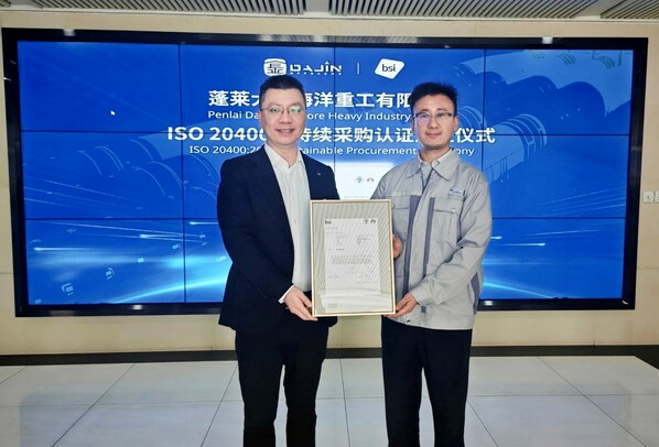 大金重工股份有限公司采购管理中心总经理苏鹏表示:"蓬莱大金获得 BSI 颁发的 ISO 20400 符合性声明是公司可持续发展的重要里程碑。在 "双碳" 目标与全球能源转型浪潮下,我们将可持续理念深耕采购全流程:建立绿色供应商准入标准,优先采购低碳环保原辅材料;推行供应链碳足迹追踪,优化运输与仓储环节能耗;定期开展供应商 ESG 培训,共享可持续管理经验。未来我们将持续联动上下游,共筑绿色供应链生态,为行业转型贡献力量!"