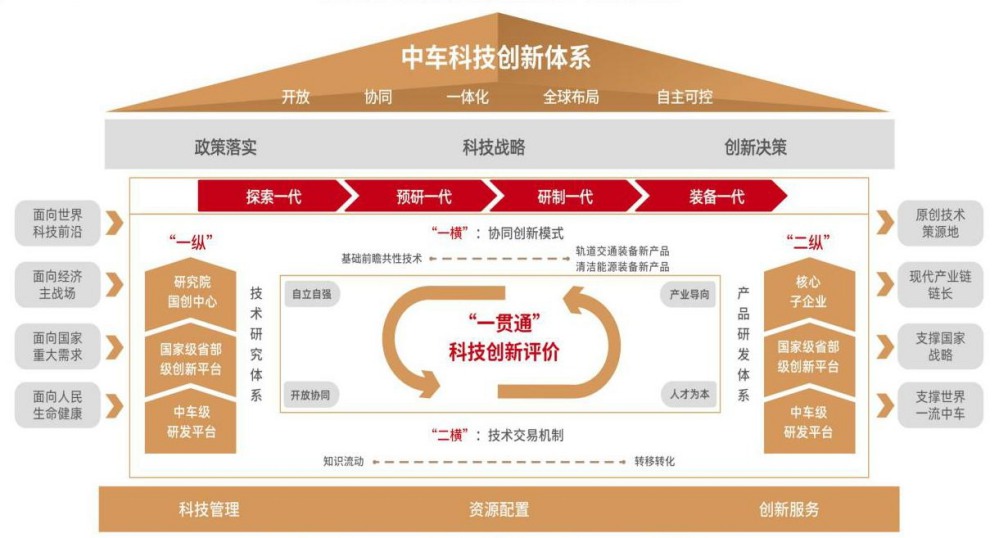 中国中车深入贯彻落实党的二十大精神、全国两会精神以及习近平总书记视察中车重要指示精神,强化中央企业科技创新主体地位,推动高水平科技自立自强,秉持“探索一代、预研一代、研制一代、装备一代”的产品研发路线,经过多年探索和发展,逐步建成“开放、协同、一体化、全球布局、自主可控”的科技创新体系,构建了轨道交通装备和清洁能源装备“双赛道双集群”产业发展格局。