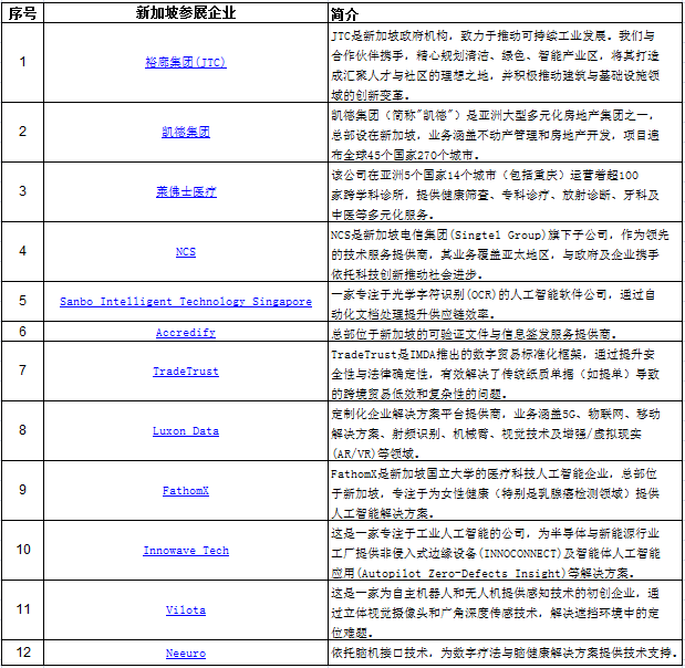 今年新加坡展馆汇聚12家创新科技、数字贸易、智慧城市领域企业,包括Accredify、凯德集团、FathomX、裕廊集团、Sanbo等