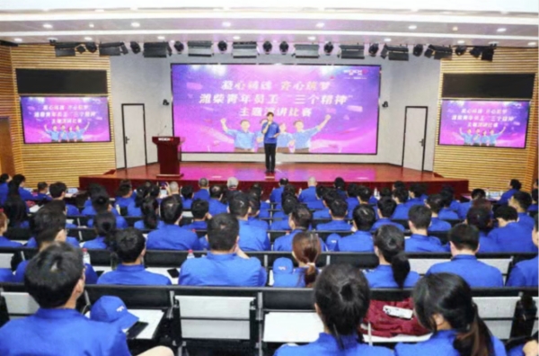 潍柴集团举办“凝心铸魂·齐心筑梦——青年员工‘三个精神’主题演讲比赛”决赛。来自各部门的青年员工登台演讲,生动讲述潍柴人践行劳模精神、劳动精神、工匠精神的感人故事,集中展现新时代潍柴员工的精神风貌与价值追求。