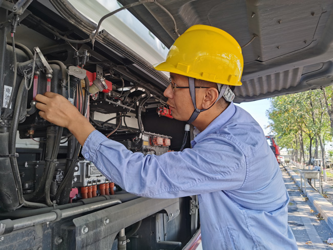 环保方面,检查组细致核查了车辆排放管路的完整可靠性,并对车辆车身挂渣等情况进行了清理整治,坚决杜绝车辆跑冒滴漏、扬尘抛洒现象的存在。