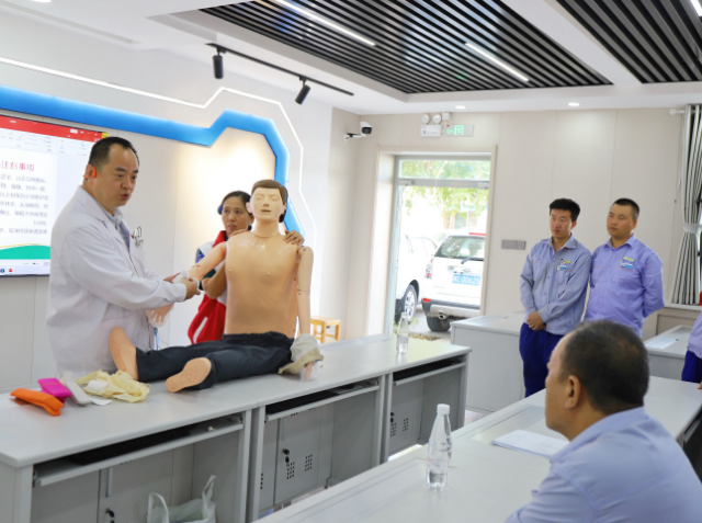 本次活动通过系统讲解、模拟演示、现场互动及一对一指导等多种形式,重点培训了心肺复苏(CPR)、自动体外除颤仪(AED)使用、开放伤口急救处理以及海姆立克急救法等核心急救技能。职工不仅听得懂、看得清,更在实操中亲身体验,逐步掌握操作要领。