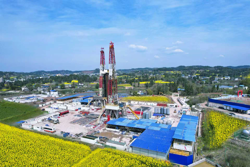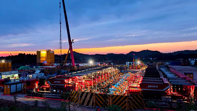 创新工程技术,实现“打成井、完好井”。资阳地区地质工程条件复杂,难钻地层厚、埋藏深、压力高、温度高,钻完井工程挑战极大。中国石化攻关团队在钻井工程方面,通过强化地质-工程一体化,集成应用耐高温、精细控压、高效封堵等技术,实现安全优快成井。在完井工程方面,首次创新采用国内最大尺度携砂压裂一体化装置,创新形成超深层页岩气压裂技术,配套超高压完井体系和关键工艺,有效支撑了高产井培育。