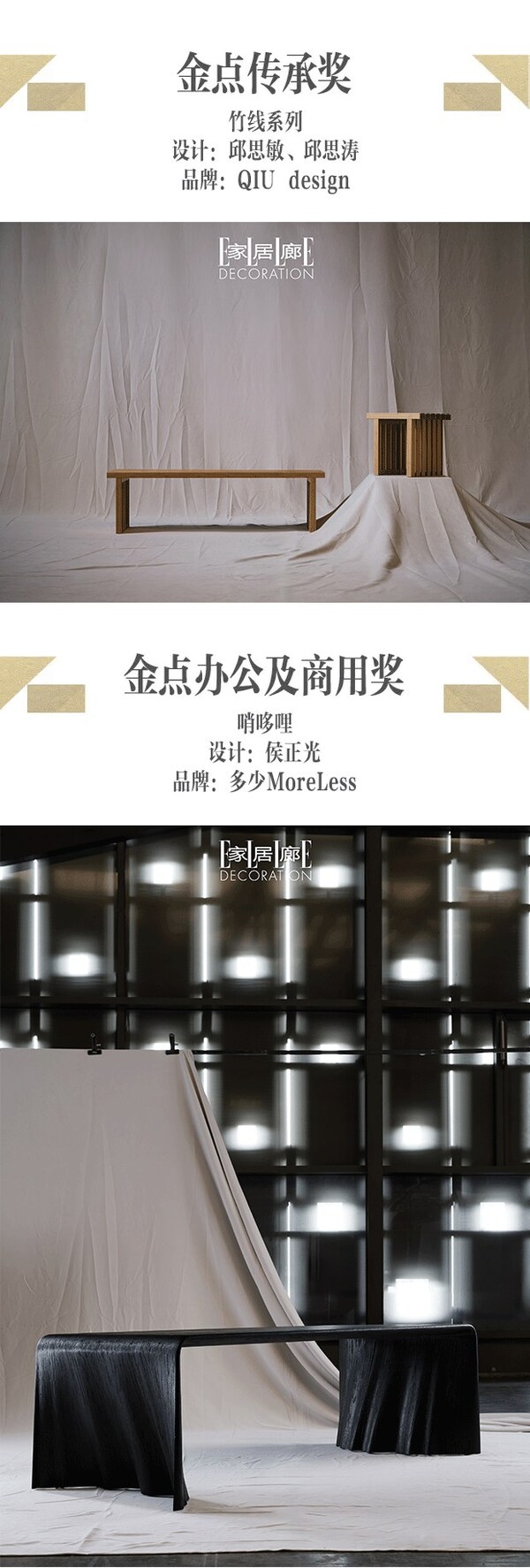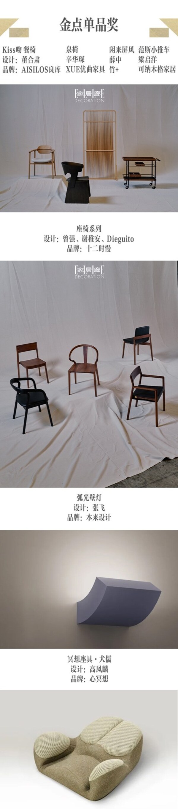 导言:9月22日, 由《家居廊 ELLE DECORATION》、中国家具协会及上海博华国际展览有限公司联合主办的设计大奖"中国家具设计金点奖",历经十年发展,吸引数百位知名设计师汇聚于此,共同探索中国家具设计的可能。