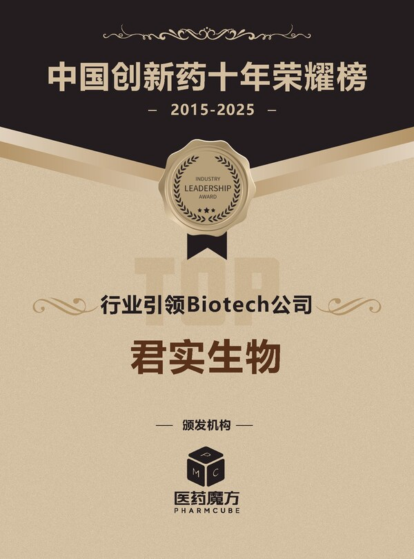 9月24日,由"医药魔方"主办的2025中国医药决策者峰会(2025CHDC)、中国创新药十年成就巡礼活动在北京顺利落幕,会议现场主办方正式揭晓本届"中国创新药十年荣耀"榜单,君实生物成功斩获"行业引领Biotech公司"和"行业引领创新药品"两项大奖。