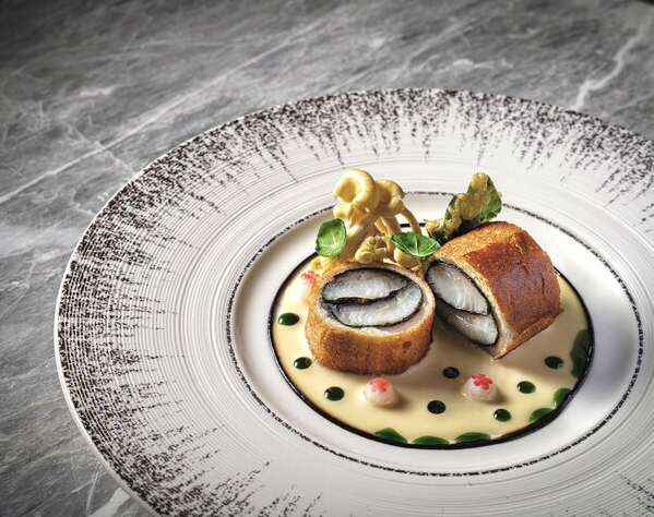 灵感来自经典的惠灵顿牛扒,以鱼肉与法国食材重新演绎的香煎龙利鱼是“丽思咖啡厅”今秋澳洲冬季黑松露飨宴的重点菜式。