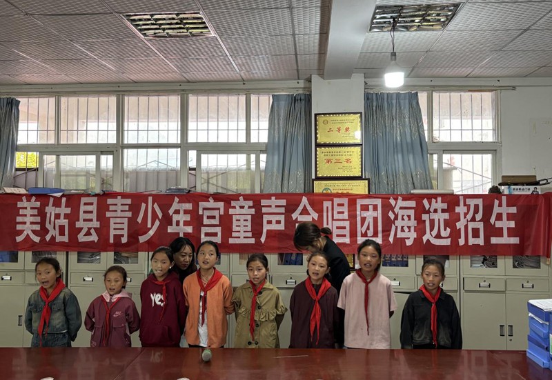 合唱团的组建工作随即启动,首要任务便是面向全县公开选拔团员。为此,青年突击队队员与县教育局、县团委的音乐特长老师组成联合选拔组,怀揣着使命与热情,历时一个月,深入美姑县城关小学、巴普镇小学等十余所中小学校,覆盖县城周边觉洛乡、巴古乡、农作乡等十余个乡镇。选拔过程中,选拔组现场聆听了超过300名彝族学生的演唱,不仅评估孩子们的音准、节奏等音乐潜质,更关注他们眼中对音乐的热爱与渴望。