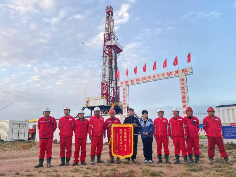 “感谢钻探工程公司的同志们,不仅为咱们草原的能源建设出力,还把牧民当亲人,帮我们解决用电难题,这面锦旗代表是我们牧民对钻探工程公司的认可,更是我们民族团结的见证!”杨巴雅尔代表周边牧民向钻探工程公司赠送锦旗。