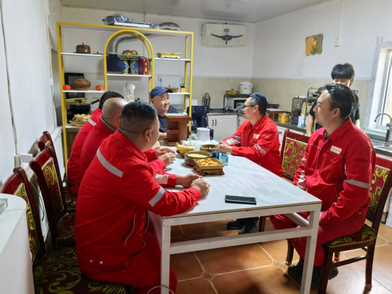 随后,党支部书记以“牢记国企使命 共护民族团结”为主题,结合井队在草原施工的实际经历,为大家上了一堂生动而深刻的党课。他娓娓道来:“咱们井队扎根草原以来,始终将民族团结放在心中最重要的位置,落实到每一个行动中。牧民朋友们送来的每一车生产生活水,都饱含着对我们的支持与信任,是我们工作的强大动力;而我们帮牧民排查电路、清除杂草、解决生活中的各种难题,也是践行‘为人民服务’宗旨的具体体现。”通俗易懂的讲解,如春风化雨,滋润着在场每一位党员和群众的心田,让大家深刻认识到,民族团结是推动发展、增进福祉的重要基石,是实现中华民族伟大复兴中国梦的力量源泉。