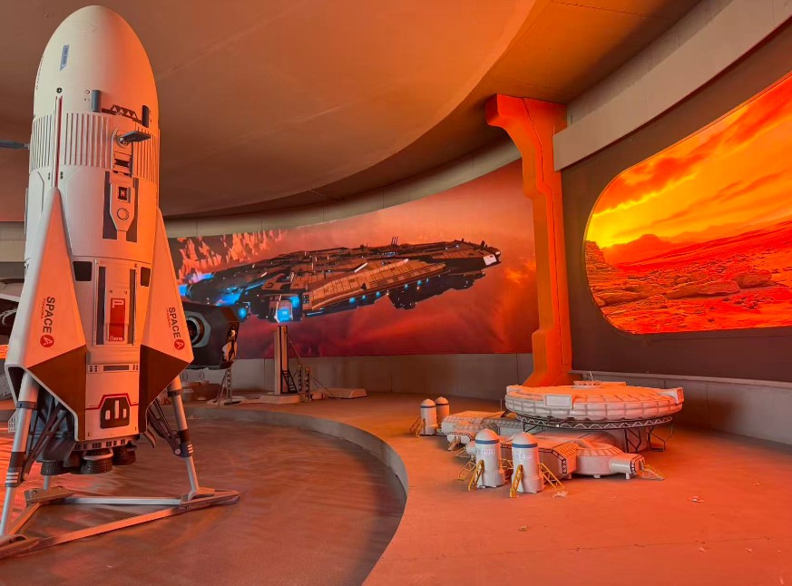 走进位于内蒙古乌兰察布市察右后旗的白音淖服务区,太空与火山元素随处可见,广场上巨大的太空人像,前台各种小摆件,甚至在门口的座椅上休息,都有太空人相伴。依托“地质文化+航天科普”主题,服务区还推出“火星拓印”地质科考体验、“星空讲堂”科普讲座等互动项目。在这里,家长们可以与孩子在飞船营地、星际启航体验仓进行沉浸式太空、火山游玩体验,在太空种植体验区、云海归途VR体验空间体验“黑科技”。此外,服务区内还有诸多太空主题文创产品、玩具可供挑选。游客可亲手制作火山岩标本,通过专业讲解探秘乌兰哈达火山与火星火山的地质关联,在实践中感受地质科学与航天探索的魅力,能感受到别样的风情与体验。