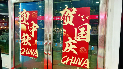 蓝海豚游船公司以庆祝双节为主题对游船进行精心装扮,营造热烈祥和的喜庆氛围。船舱内回荡的爱国经典乐曲,与窗外流动的城市夜景相得益彰。