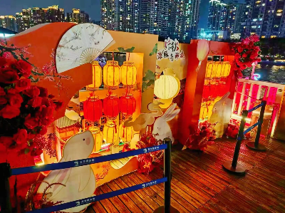 在精心布置的中秋灯谜合影区前,传统汉服之美与璀璨珠江夜景交相辉映,游客于粼粼波光间猜灯谜、着华服、赏明月,沉浸式体验一场跨越千年的国风雅集。通过寓教于景的方式,让传统之美浸润人心,展现出传统文化在羊城文旅场景中的蓬勃生命力。