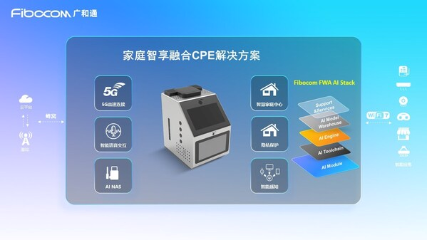广和通家庭智享融合CPE解决方案在纯通信的5G FWA基础上,创新集成图像处理、语音交互和AI NAS等能力,融合广和通端侧AI Stack平台,推动FWA由"单体通信硬件设备"向"家庭智能中心"演进。