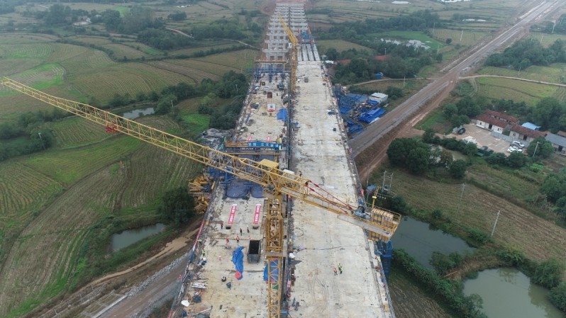 10月16日,中国能建葛洲坝三峡建设公司承建的武荆宜高速项目疏港铁路特大桥主墩连续梁全部浇筑完成,主桥左幅中跨成功合龙。