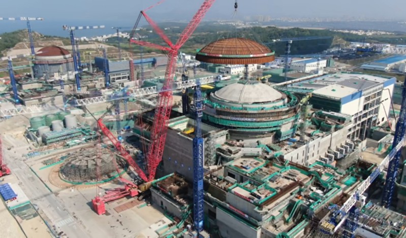 广东陆丰核电5号机组外穹顶吊装就位