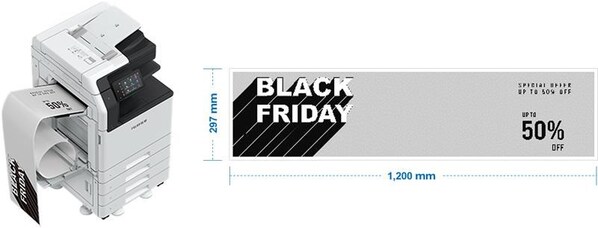系列新品具有强大的纸张处理能力,支持从52gsm薄纸到300gsm重磅纸,以及297×1,200mm长幅纸,可满足信封、直邮、海报、促销横幅以及长幅海报等丰富的个性化打印需求。