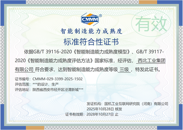 近年来,公司贯彻落实集团公司“数智工程”战略,以构建“数智西北工业”为目标,持续深化智能制造实践,已获评陕西省先进级智能工厂,此次通过智能制造能力成熟度三级认证,是公司扎实推进数智工程建设的成果体现。